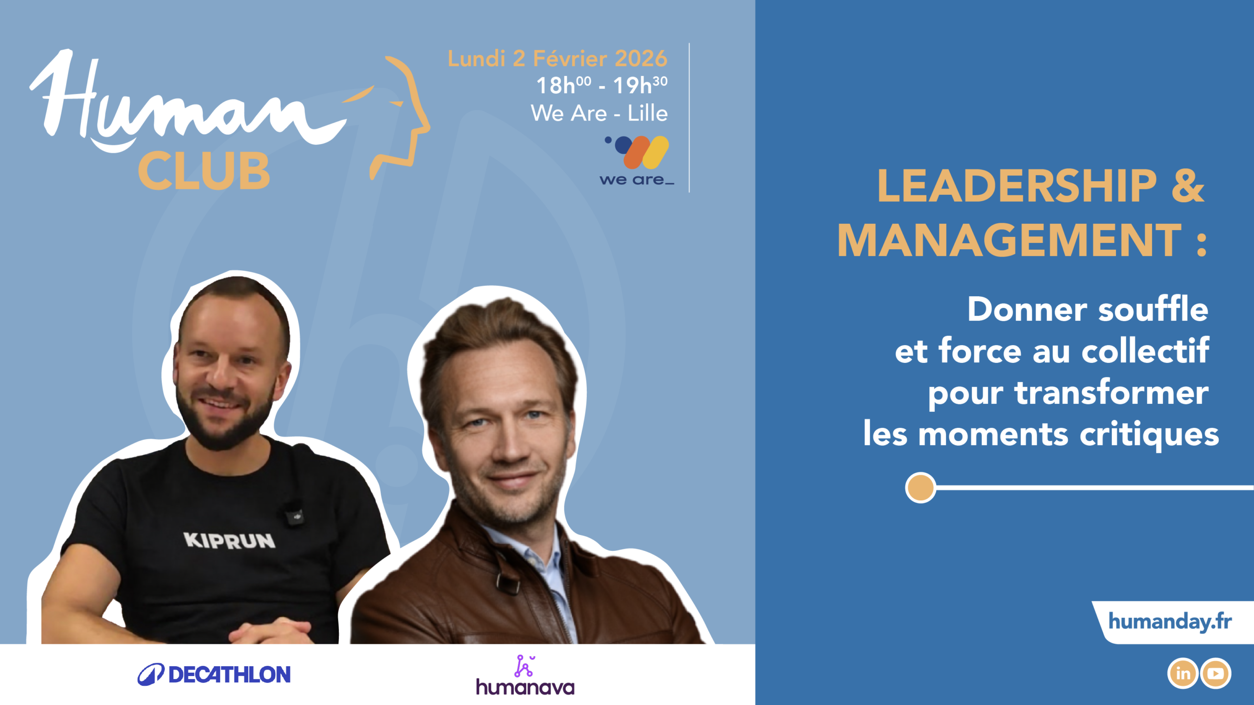 Cette rencontre est accessible au tarif de 35 € TTC par personne, et offerte aux adhérents du Human CLUB.